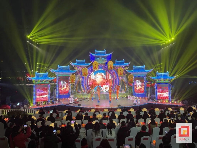 开幕当晚,现场播放了“非遗贺新春 点亮中国灯”活动宣传片,展示全国各地灯会的多元风采。伴随着LED大屏幕播放的全国灯会点亮集锦视频《灯耀寰宇》,矩阵数控表演《灯贺中华》点燃现场气氛,将中华大地的非遗灯彩之美推向高潮。