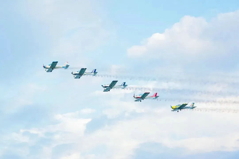 亮灯仪式当晚,多次执飞珠海航展的飞行团队带来精彩的飞行表演,拉开了亮灯仪式的序幕。在阵阵音乐和欢呼声中,飞行编队缓缓升空,在碧蓝的天空中灵活地穿梭、重组,流畅地组合成各种虚拟图案,令人目不暇接。