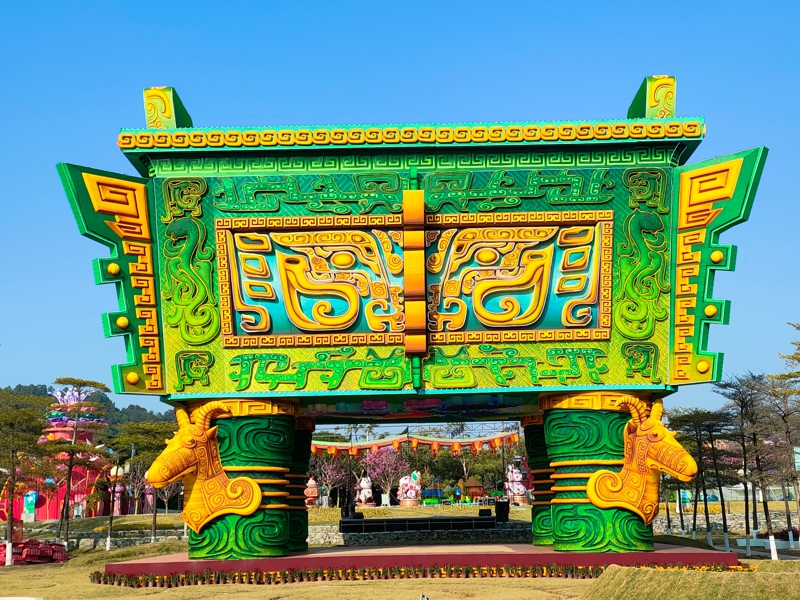 据悉,这次灯会以喜(禧)粤大道为轴,按“一轴五园区”的布局,一千多名非遗工匠精心打造218组灯景,超10000盏彩灯,主游线路超3公里,全方位展示粤港澳大湾区11个城市的文化魅力。